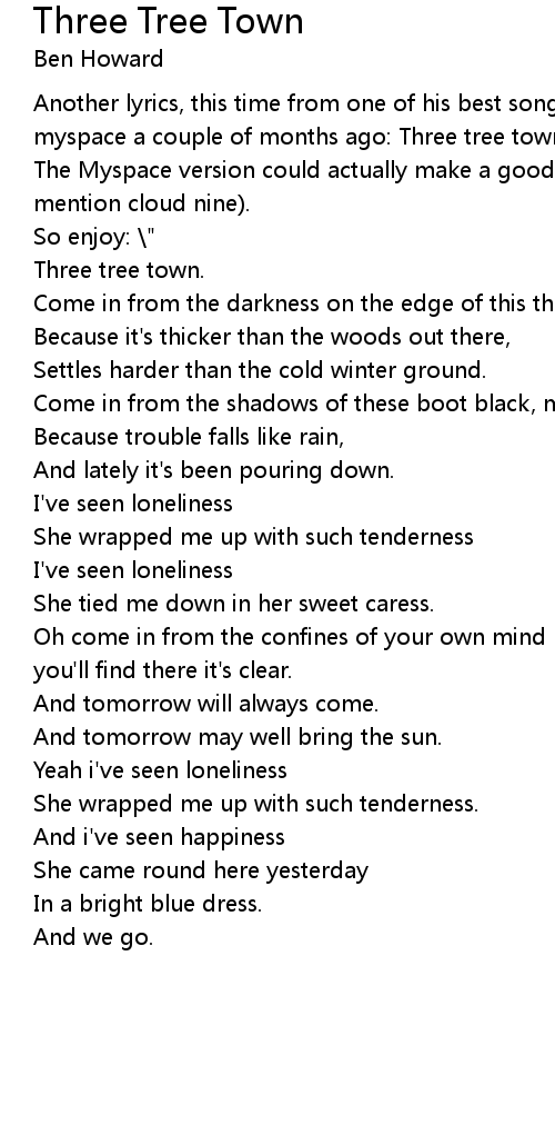 Another lyrics, this time from one of his best songs. He published it on his myspace a couple of months ago: Three tree town.