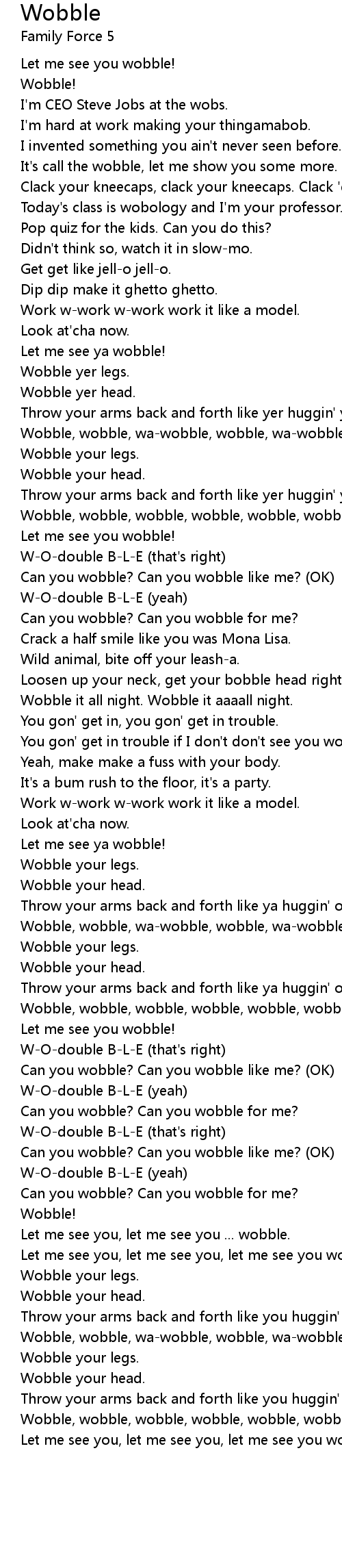 Wobble, wobble, wa-wobble, wobble, wa-wobble, wobble, wobble, wobble, wobble.