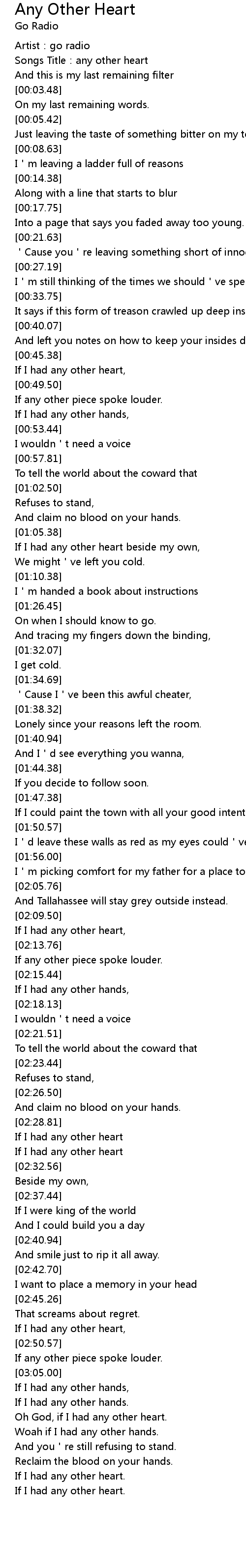 | [01:48.63] | If I could paint the town with all your good intent. |