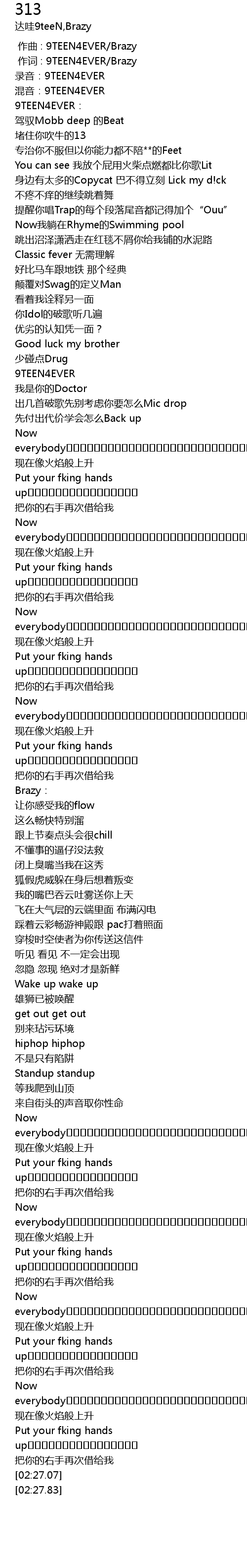 | [02:14.48] | Put your fking hands up bǎ nǐ de yòu shǒu zài cì jiè gěi wǒ |