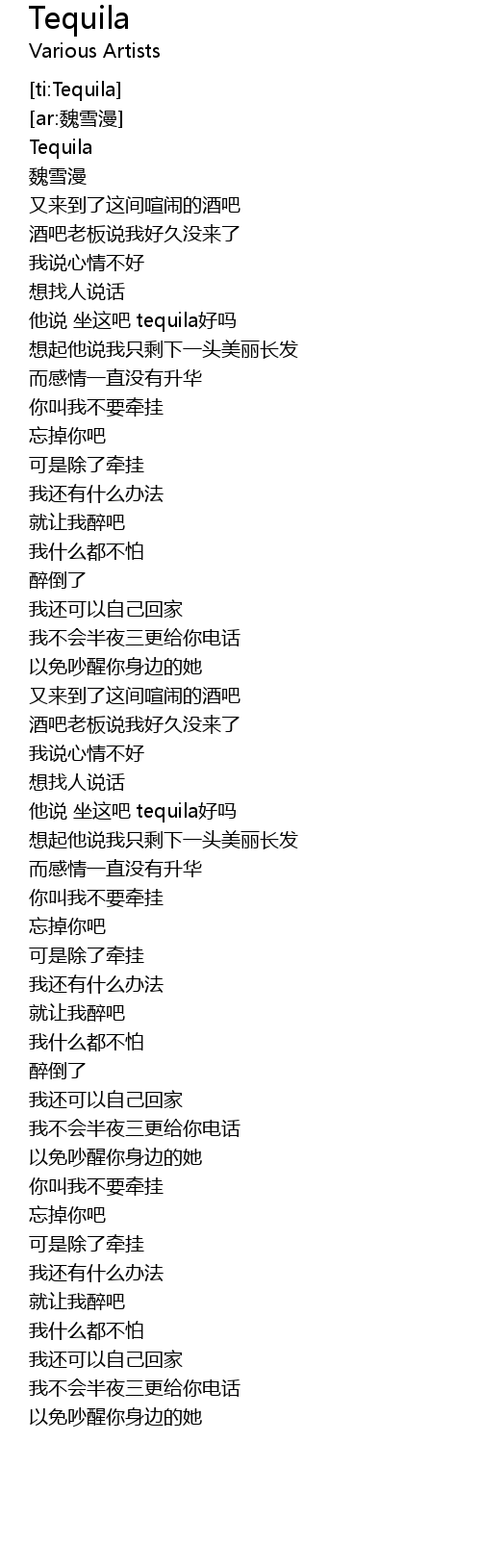 | [00:53.03] | 他说 坐这吧 tequila好吗 |