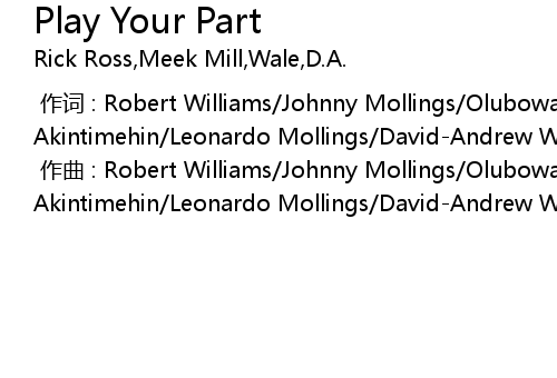 | [00:00.000] | zuò cí : Robert Williams Johnny Mollings Olubowale Akintimehin Leonardo Mollings DavidAndrew Wallach Lee Major Leigh Elliott |