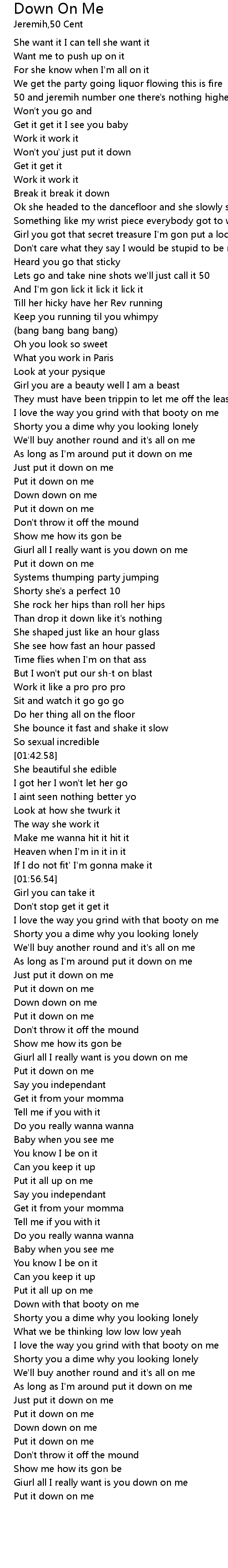| [01:23.39] | Put it down on me |