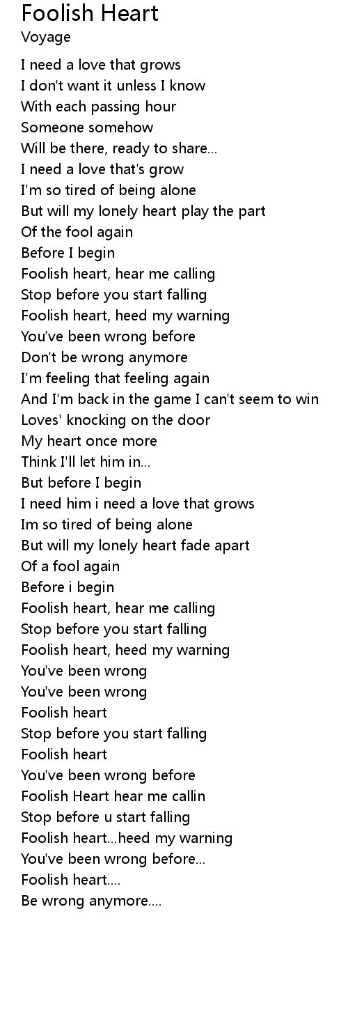 Foolish Heart hear me callin |