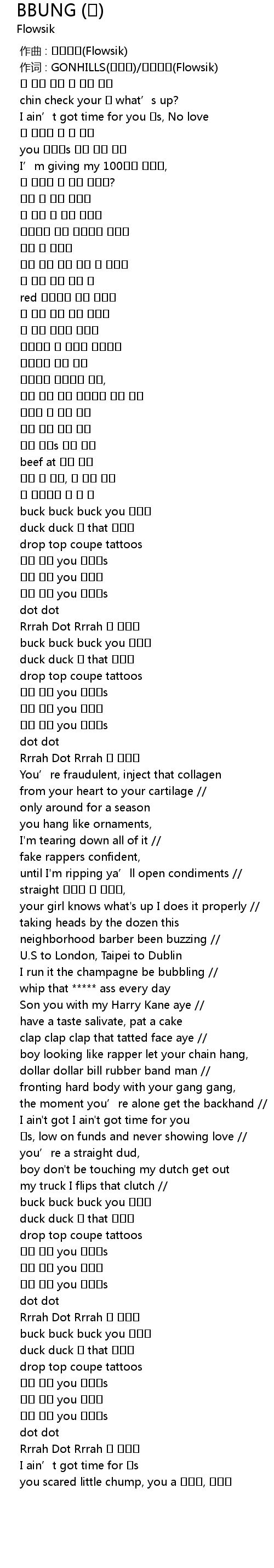 | [01:58.292] | 뻥s, low on funds and never showing love // |