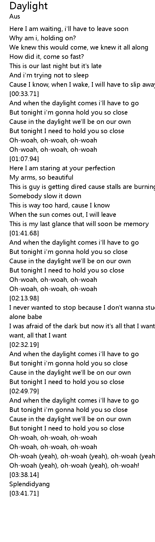 | [02:34.01] | And when the daylight comes i'll have to go |