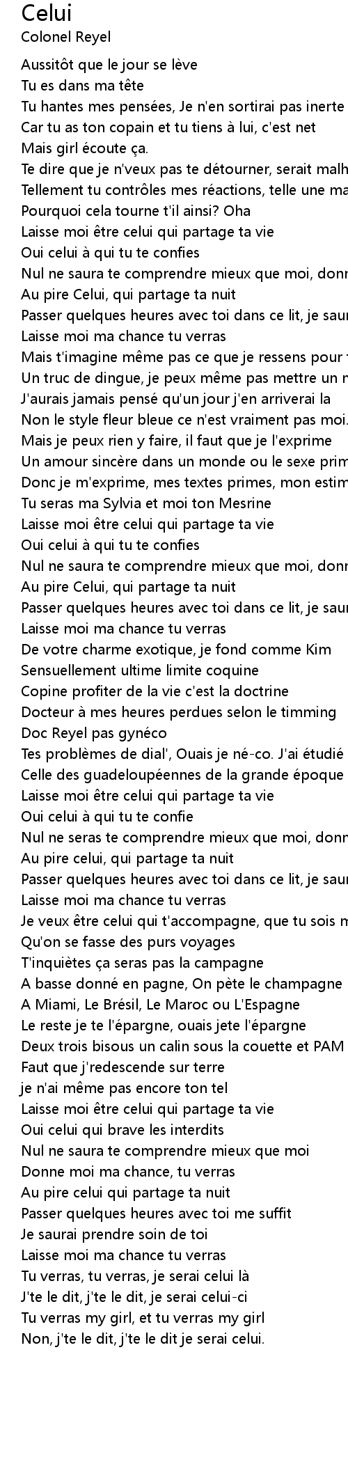 | Nul ne seras te comprendre mieux que moi, donne moi ma chance tu verras | |