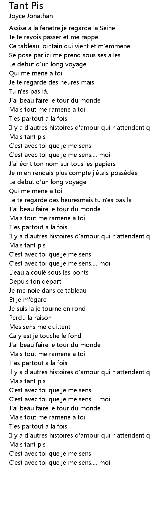 | Il y a d' autres histoires d' amour qui n' attendent que moi | |