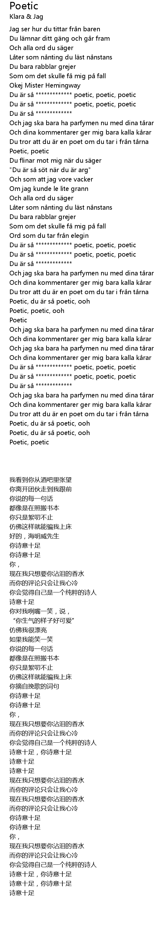 | [00:47.50] | Du är så ************* poetic, poetic, poetic |