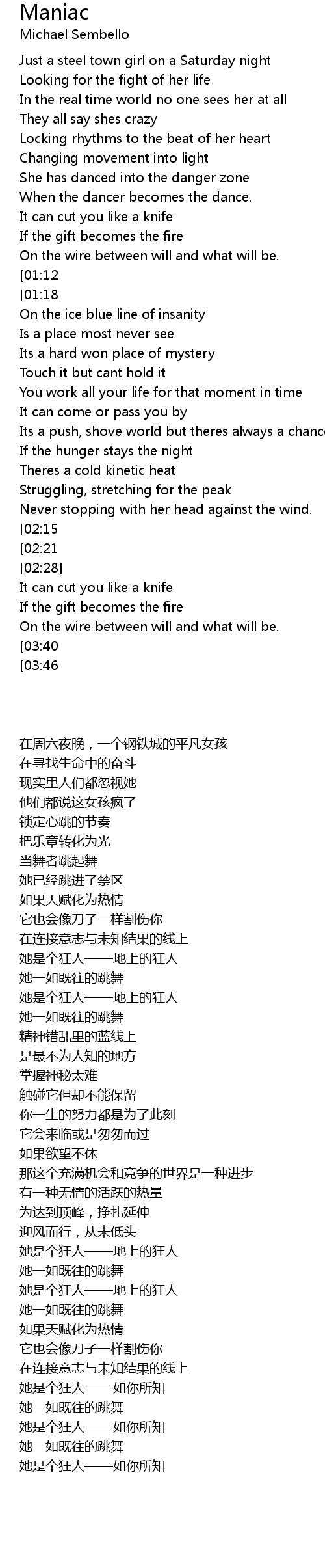 Shes a maniac--maniac at your door |