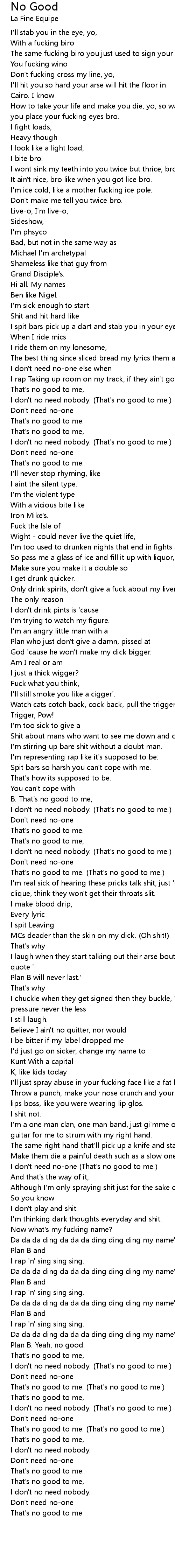 Spit bars so harsh you can't cope with me. |
