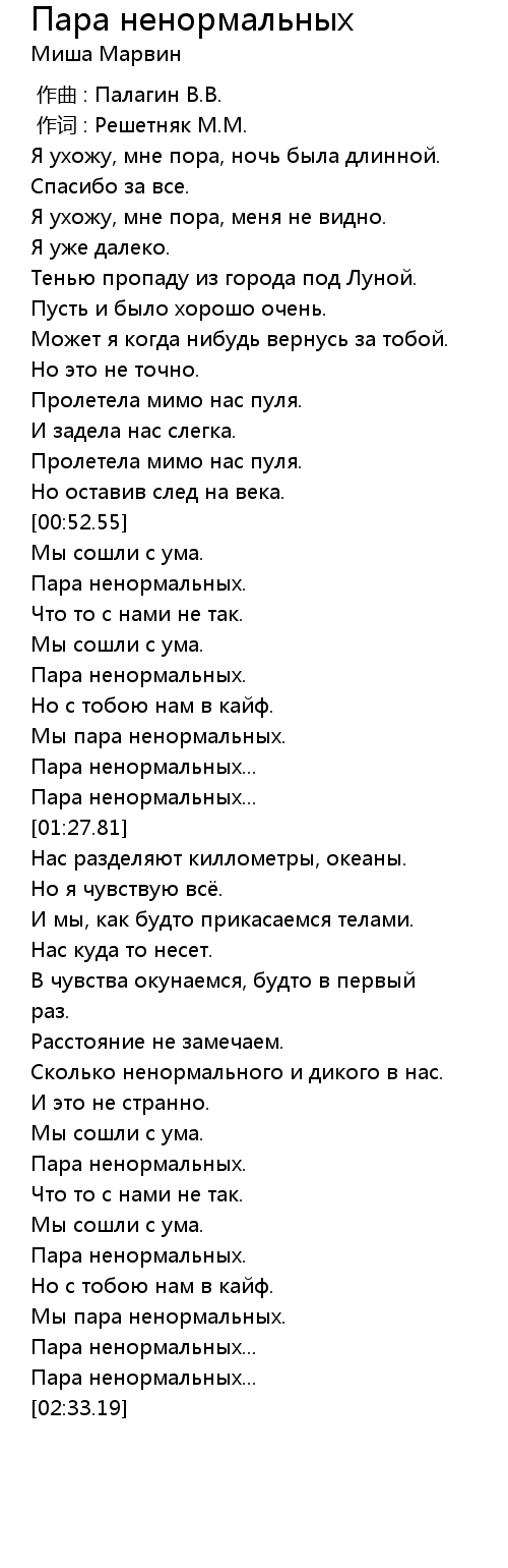 歌曲 Пара ненормальных