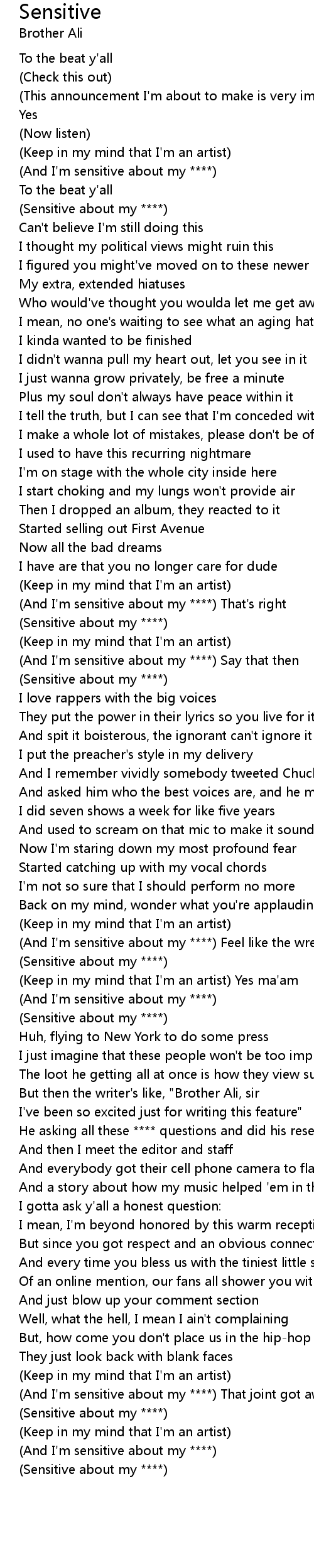 (And I'm sensitive about my ****) Feel like the wrestler |