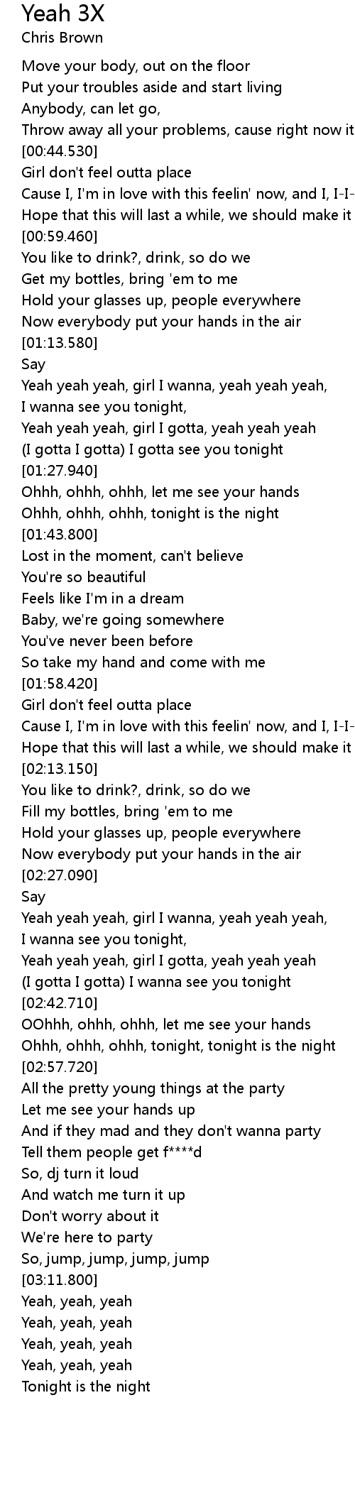 Yeah yeah yeah, girl I wanna, yeah yeah yeah, |