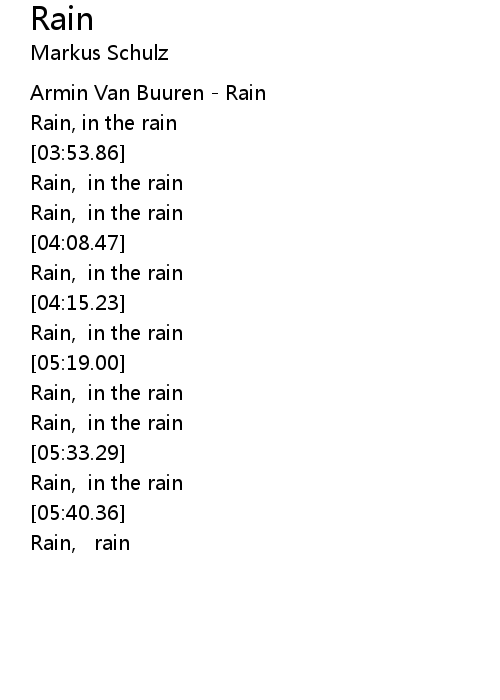 | [00:00.49] | Armin Van Buuren - Rain |