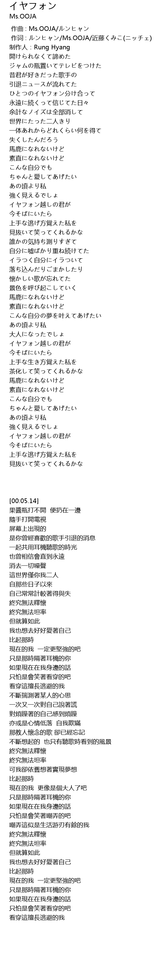 | [00:01.000] | zuo ci : Ms. OOJA jin teng |