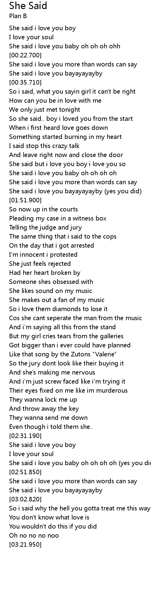 | [00:13.790] | She said i love you boy |