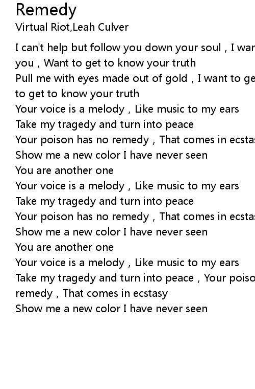 | [03:05.000] | Take my tragedy and turn into peace, Your poison has no remedy, That comes in ecstasy |