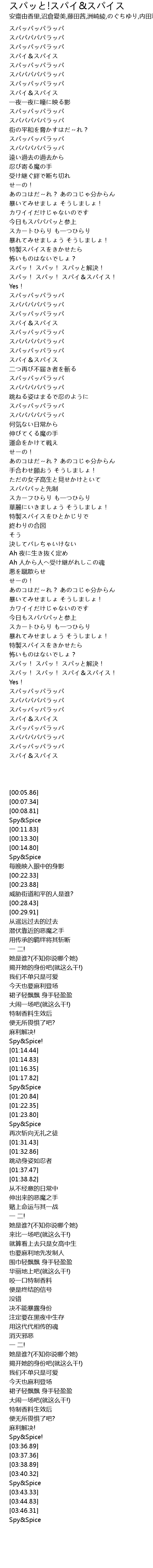 | [01:11.85] | スパッ! スパッ! スパイ&スパイス! |