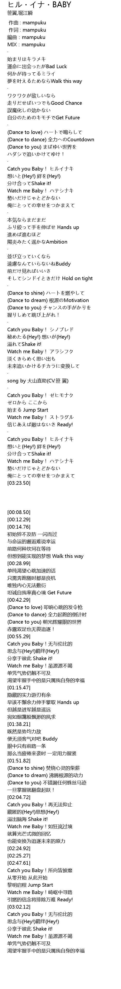 | [03:02.32] | Catch you Baby! ヒルイナキ |