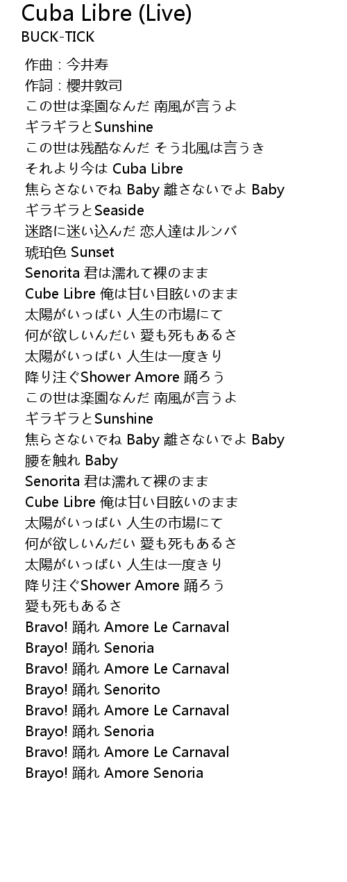 | [00:33.704] | jīn Cuba Libre |