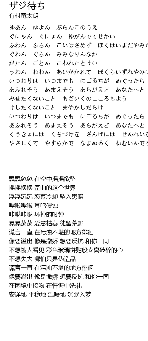 | 歌曲 | ザジ待ち |