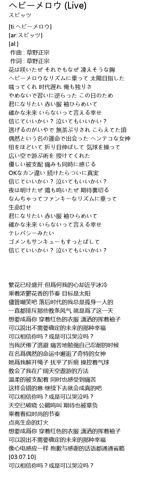 | [00:01.000] | 作词 : 草野正宗 |