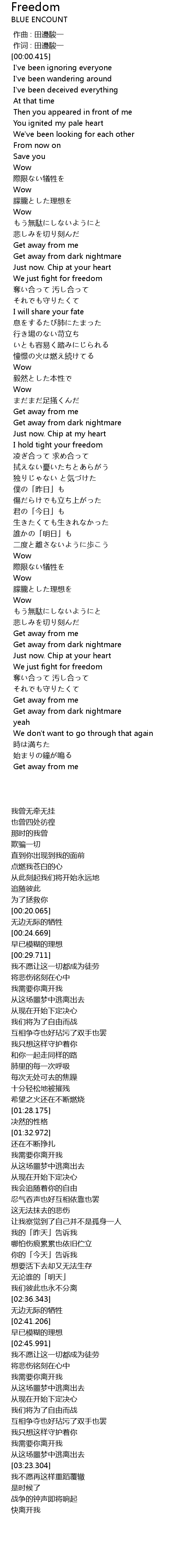 | [00:00.138] | 作词 : 田邊駿一 |