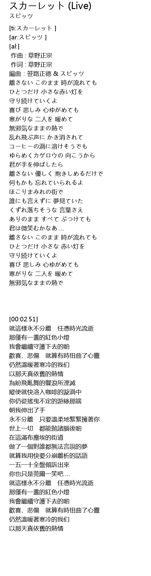 | [00:02.51] | 編曲:笹路正徳 & スピッツ |