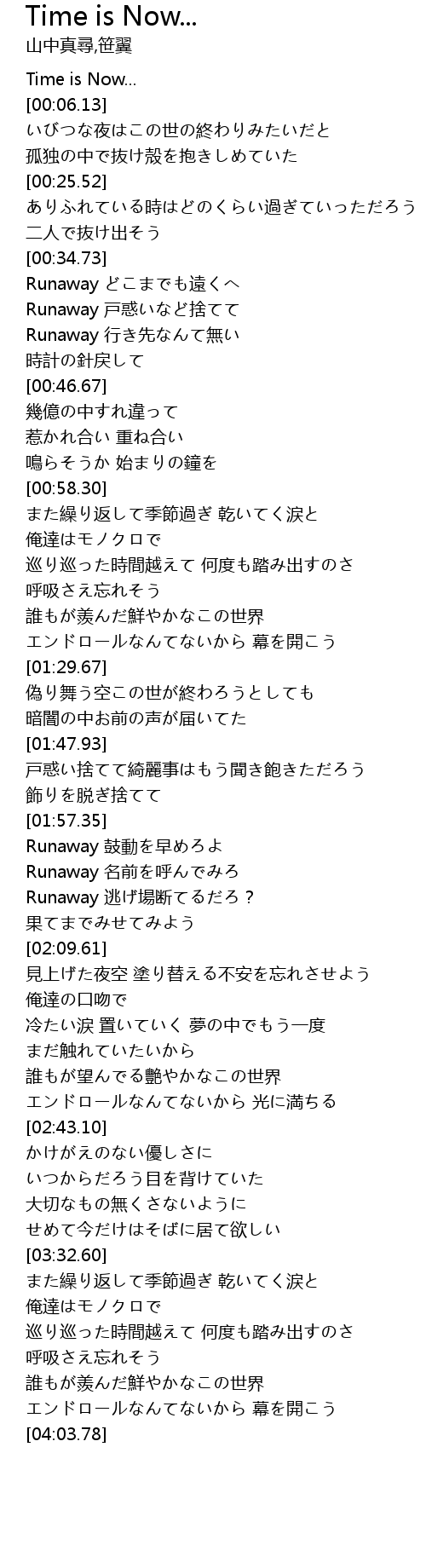 | [00:05.22] | Time is Now... |