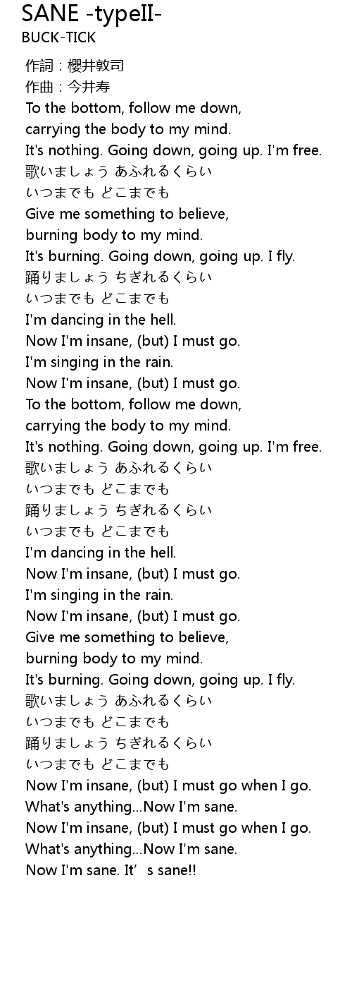 | [03:28.194] | Now I'm insane, (but) I must go when I go. |