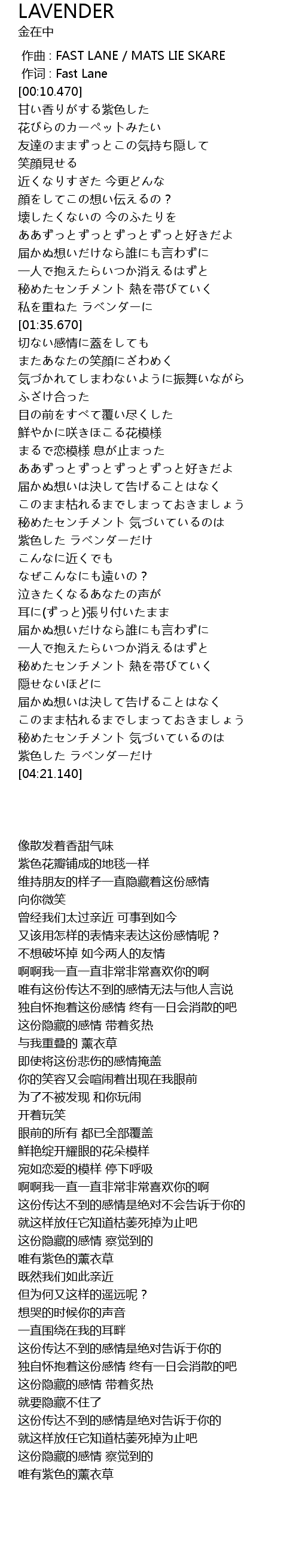| [02:49.700] | 唯有紫色的薰衣草 |