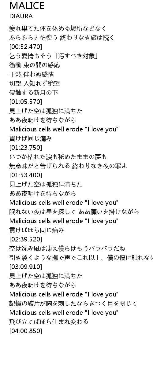 | [01:14.100] | Malicious cells well erode "I love you" |
