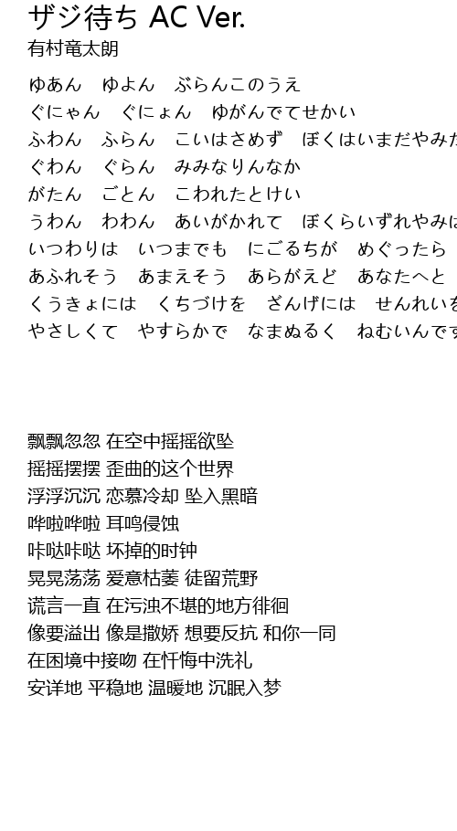 | 歌曲 | ザジ待ち AC Ver. |