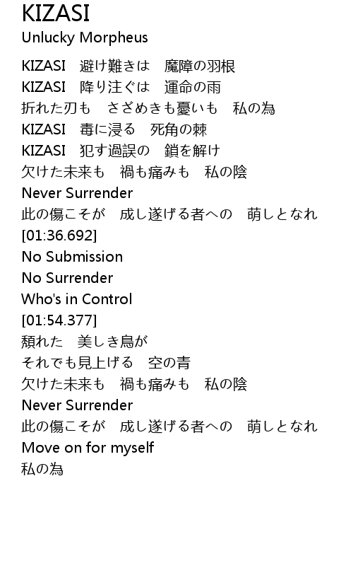 | [00:23.758] | KIZASI 降り注ぐは 運命の雨 |