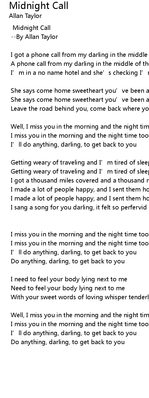 | I got a phone call from my darling in the middle of the night | |