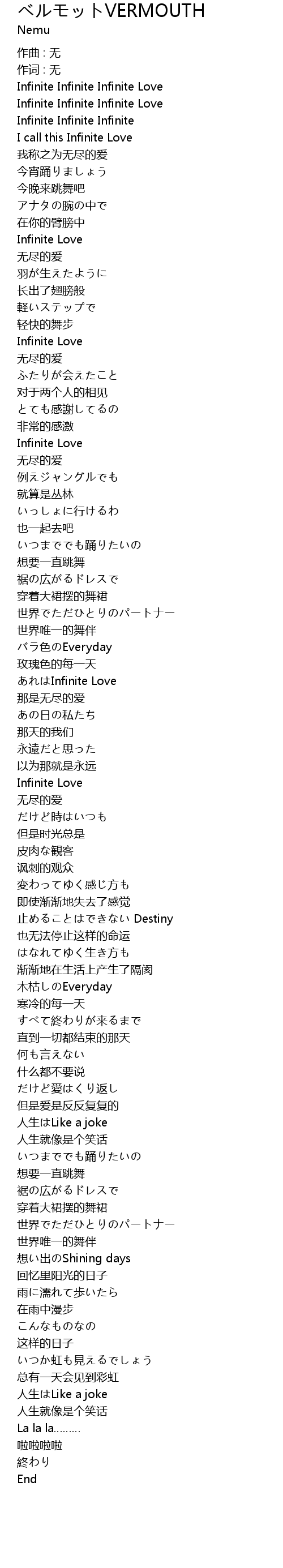 | wǒ chēng zhī wéi wú jìn de ài | |