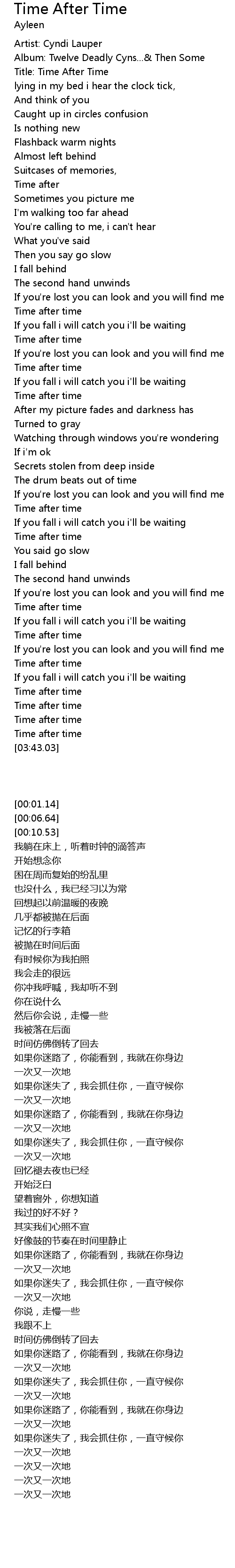 Title: Time After Time |