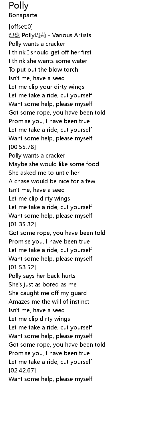 | [00:09.80] | Polly wants a cracker |
