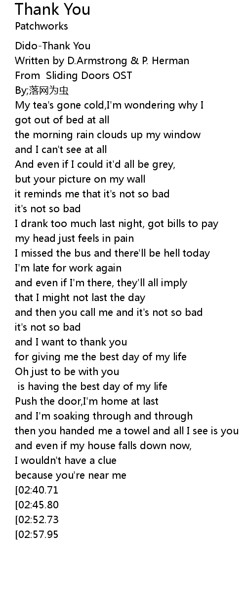 | [00:09.70] | Written by D.Armstrong & P. Herman |