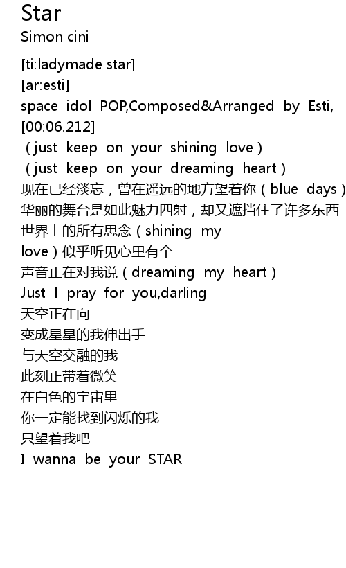 | [00:03.353] | space idol POP,Composed&Arranged by Esti, |