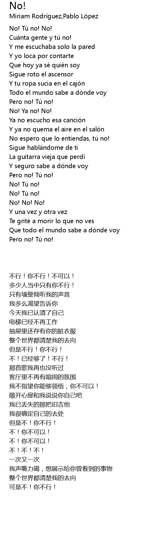 | [00:01.17] | No! Tú no! No! |