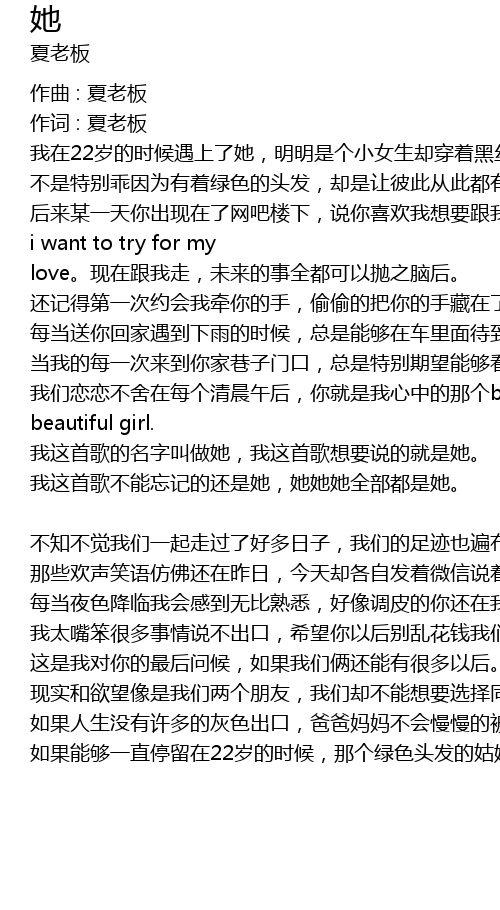 | 作词 : 夏老板 | |