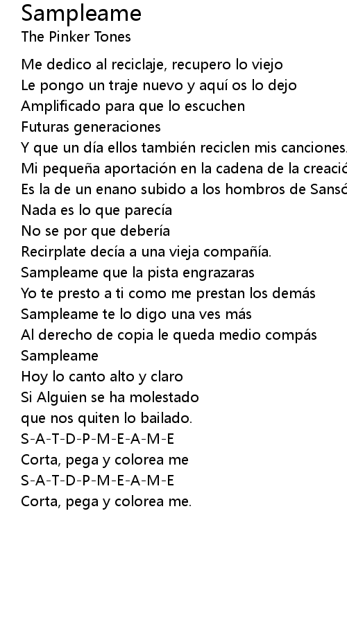 | Y que un di a ellos tambie n reciclen mis canciones. | |