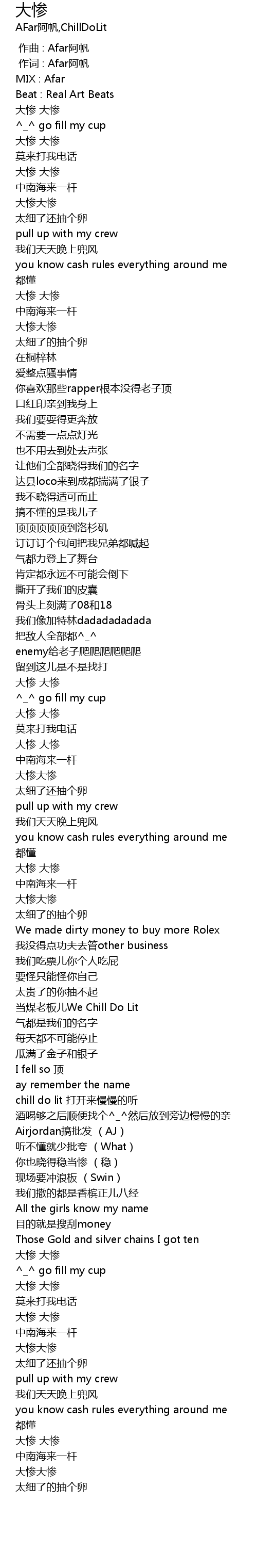 | [01:52.73] | 大惨大惨 |