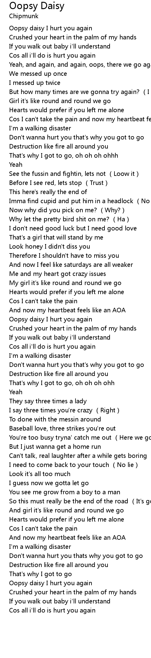 | [00:00.30] | Oopsy daisy I hurt you again |