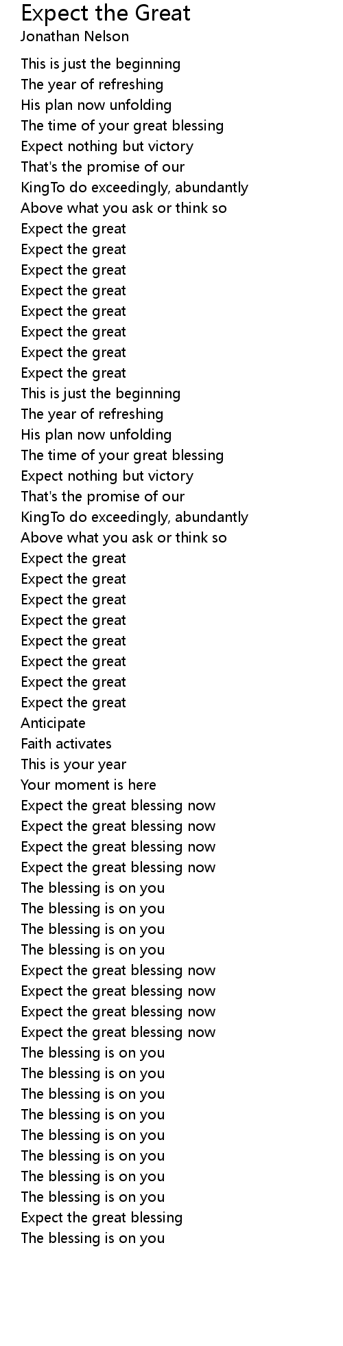 Expect the great blessing |