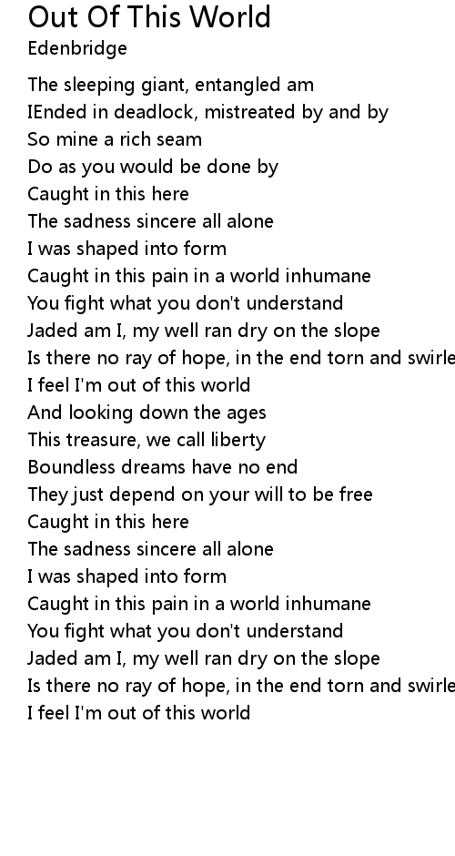 I feel I'm out of this world |