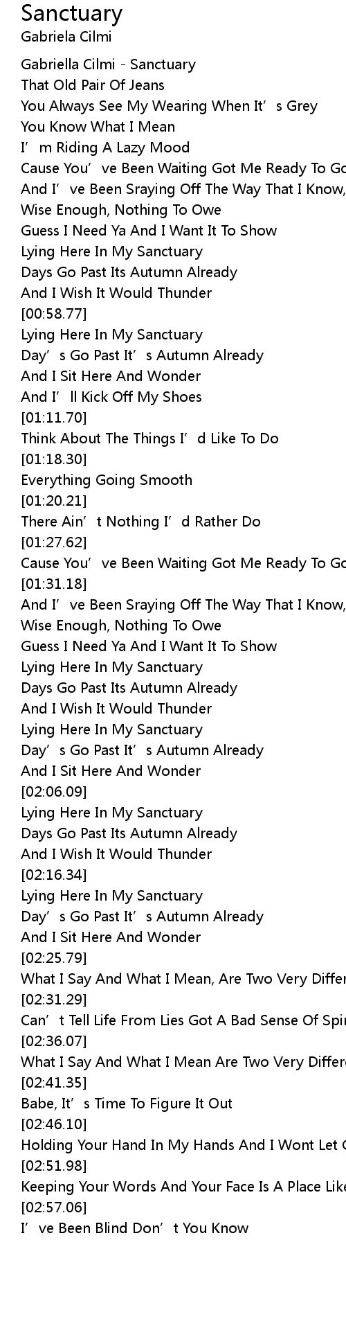 | [00:00.33] | Gabriella Cilmi Sanctuary |