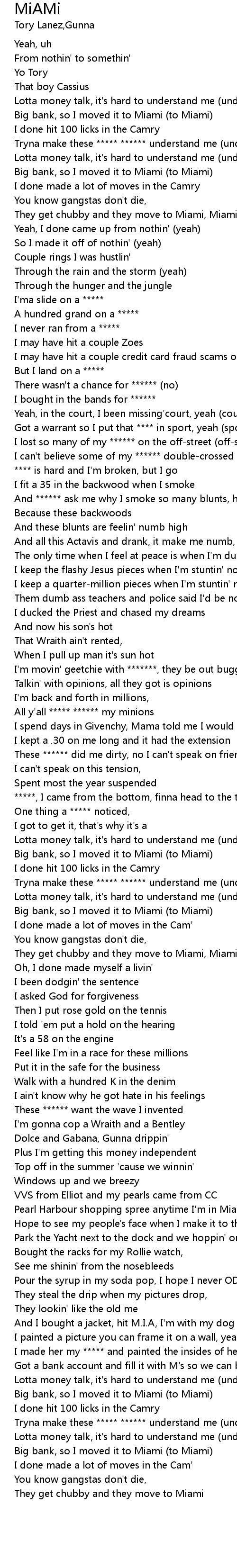 They get chubby and they move to Miami, Miami, Miami |